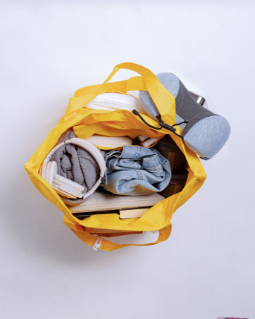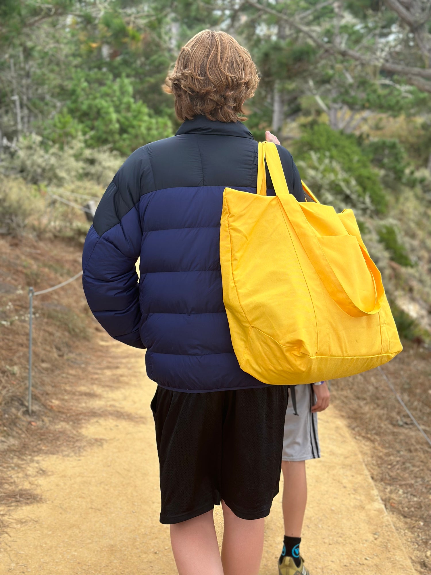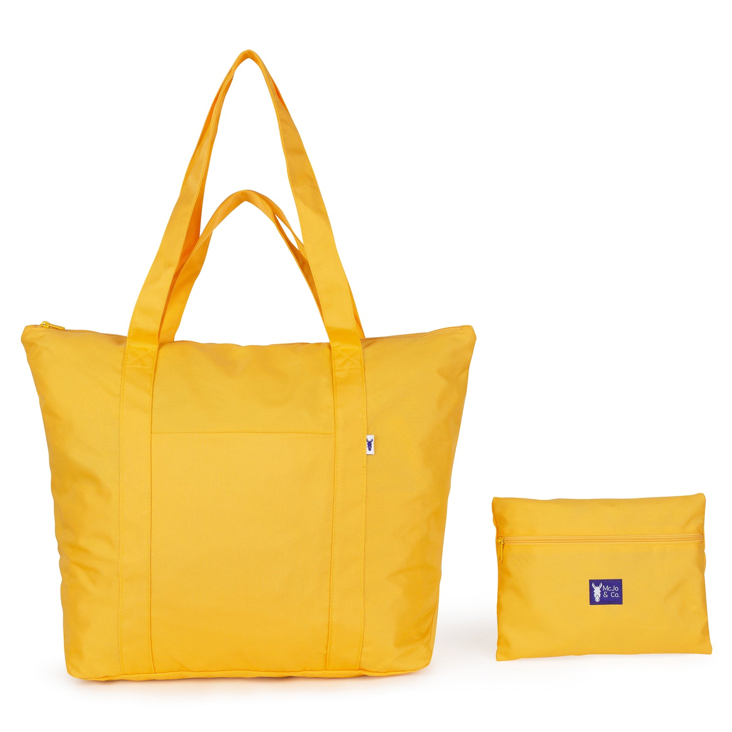 When you’re done, fold the tote small and tuck it inside its travel pouch — compact, convenient, and ready for your next adventure.